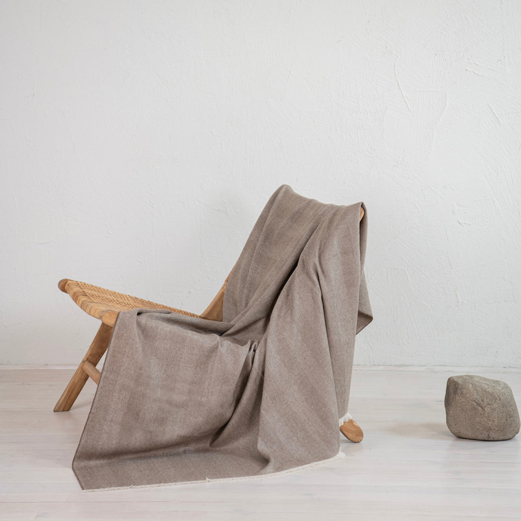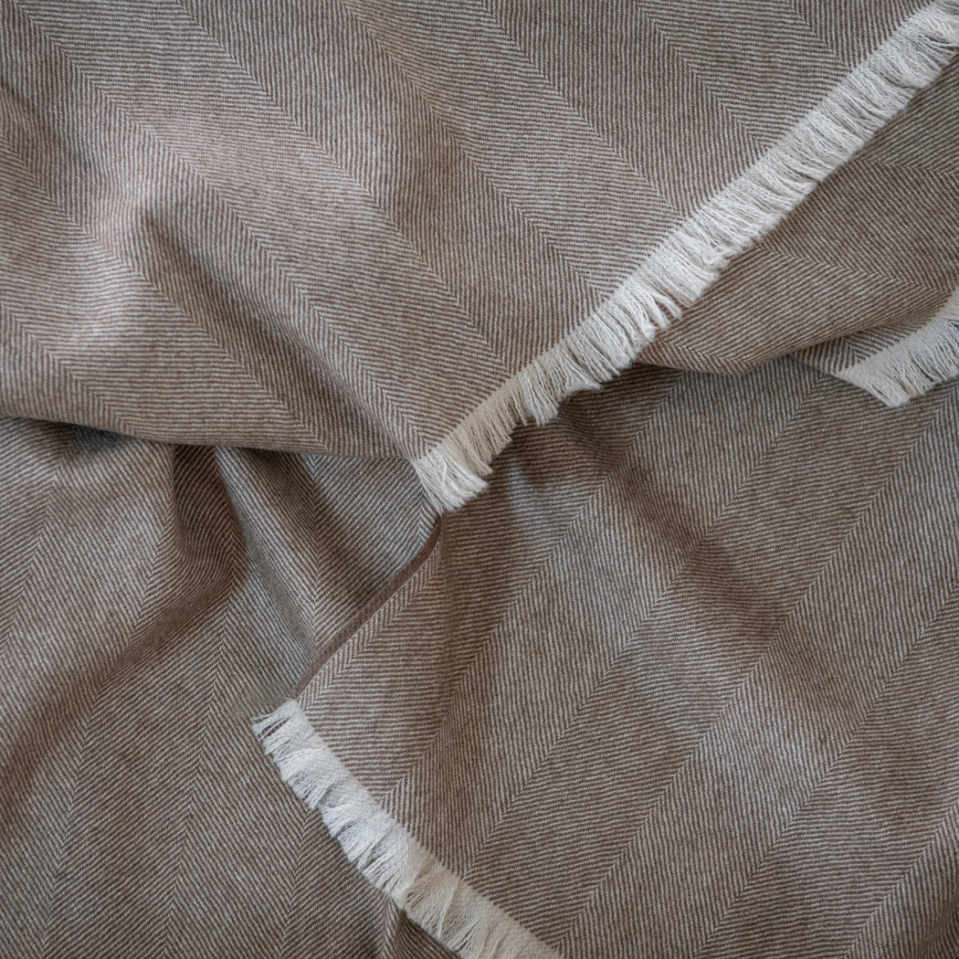 Lagani i elegantni prekrivač od 100% royal alpake, jednog od najfinijih prirodnih vlakana na svetu. Alpaka vuna potiče iz Perua i cenjena je zbog izuzetne mekoće, lakoće i prirodne topline. Royal alpaka predstavlja njen najfiniji kvalitet. Topla, lagana i suptilno elegantna, prijatna je na koži i ne grebe. Idealna kao lagani prekrivač za sofu ili krevet, za trenutke odmora tokom cele godine.
