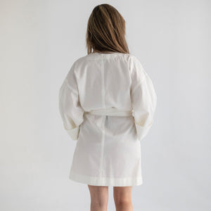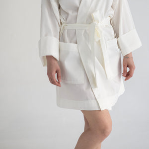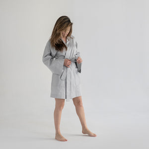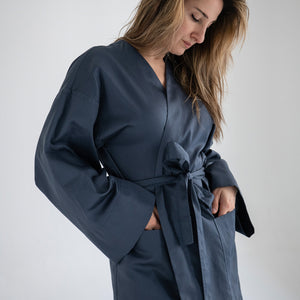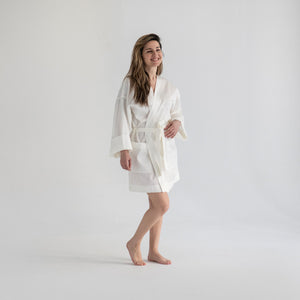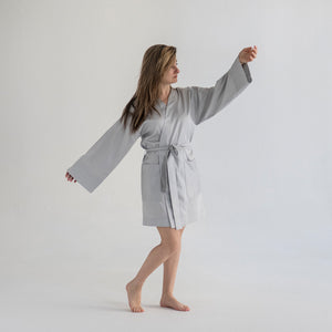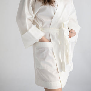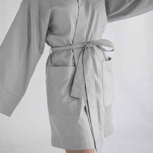 Kratki bademantil od egipatskog giza saten pamuka donosi nežan osećaj svilenkaste lakoće na koži. Lagane teksture, prijatan i udoban, savršen je za jutarnje trenutke, večernje opuštanje i one tihe sate u danu. Kroj je ženstven, jednostavan i ležerno prati liniju tela, dok diskretni satenski sjaj otkriva kvalitet materijala. Prirodan, prozračan, mekan I suptilan, ovaj bademantil je tvoj svakodnevni, lagani sloj luksuza.